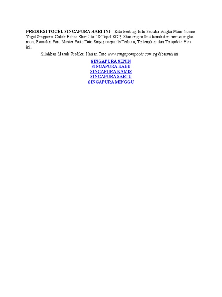 Prediksi Togel Singapura Hari Ini Pdf